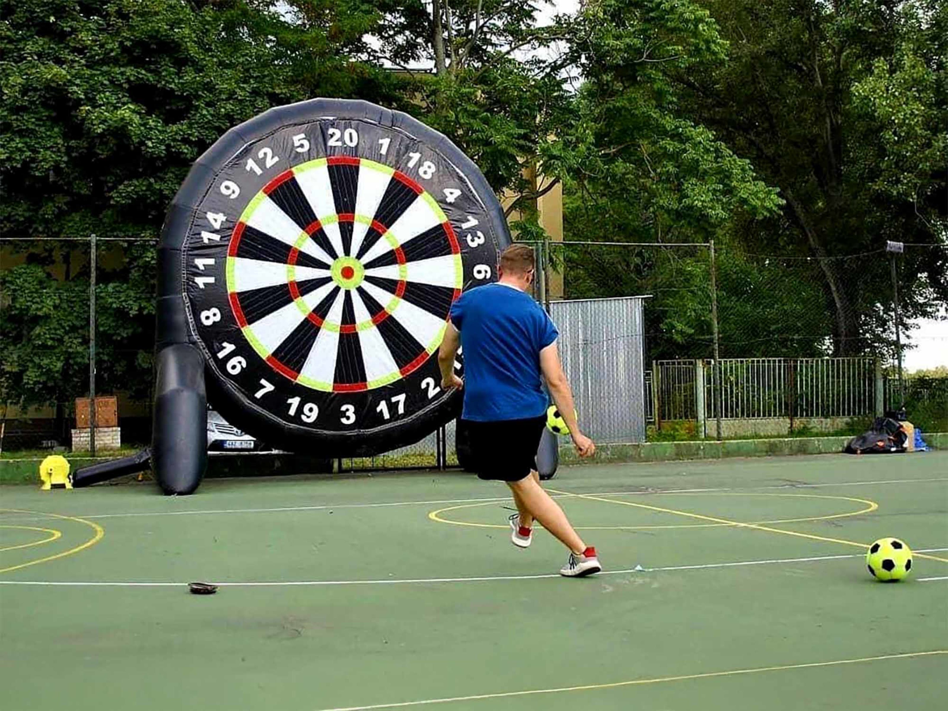 - Giant foot darts, speed kick radar challenge, top bins practice