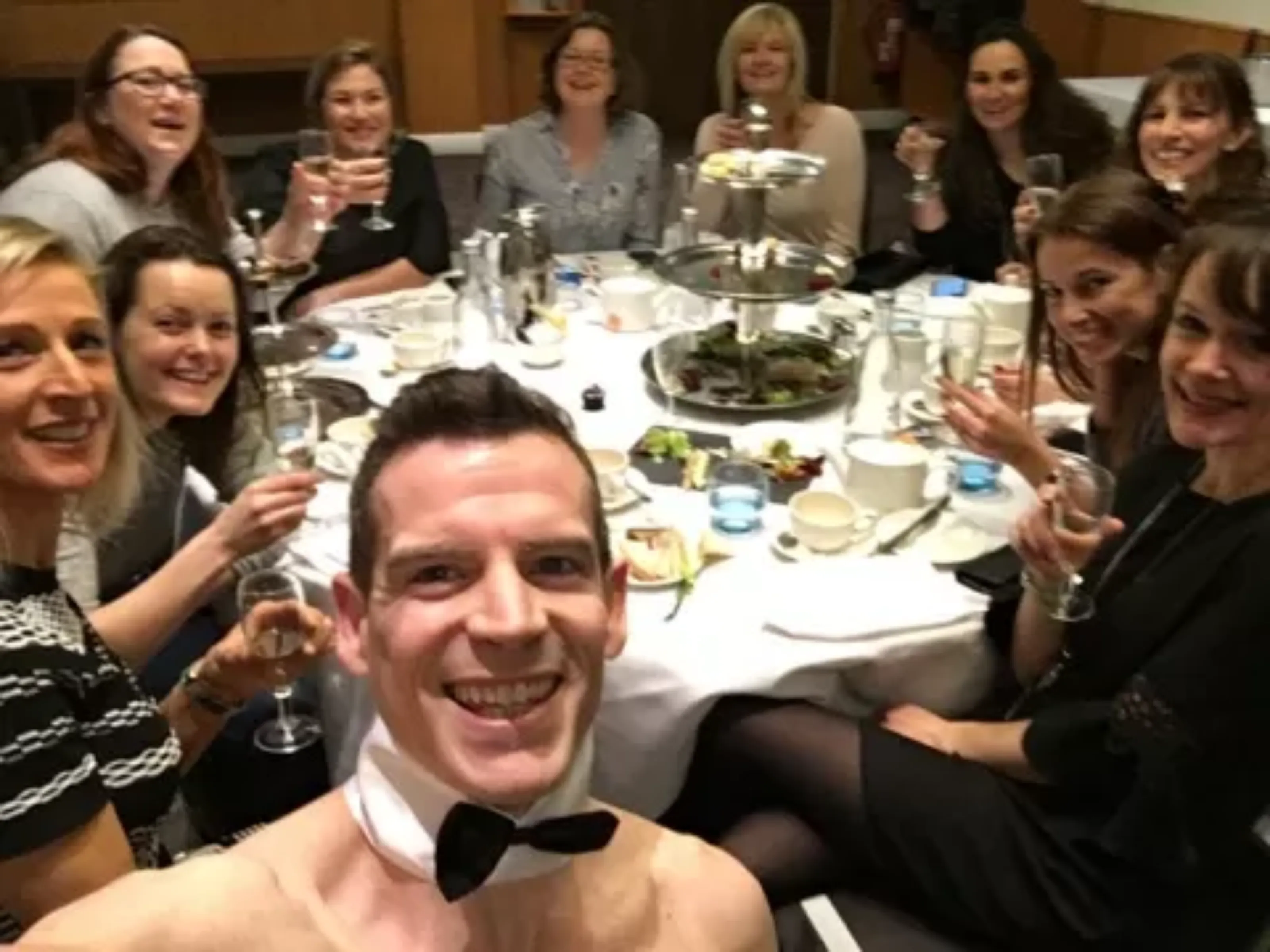 During the Afternoon Tease hen party experience, you and the girls will be able to enjoy your usual afternoon tea treats with the addition of a little bit of eye candy. Make your way over to the centrally located venue and get ready to have some fun. You’ll be greeted by your butler who will be there waiting to give you all a glass of prosecco to start.