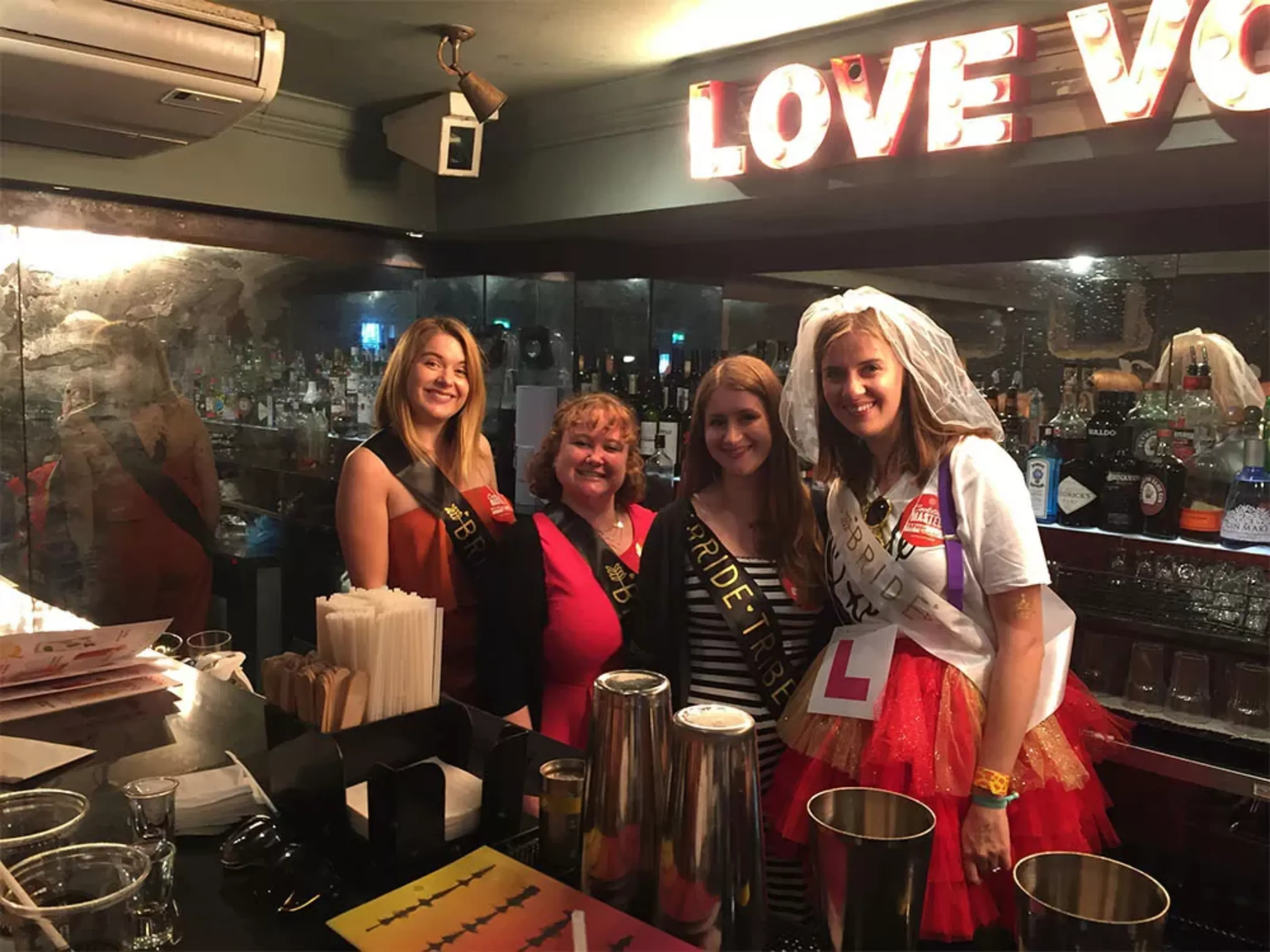 The cocktail masterclass & meal hen party will be based in a city centre bar or restaurant. We always ensure that they’re based in a prime location so that once the event is over you will be able to go off to the next bar or club and make a night of it!