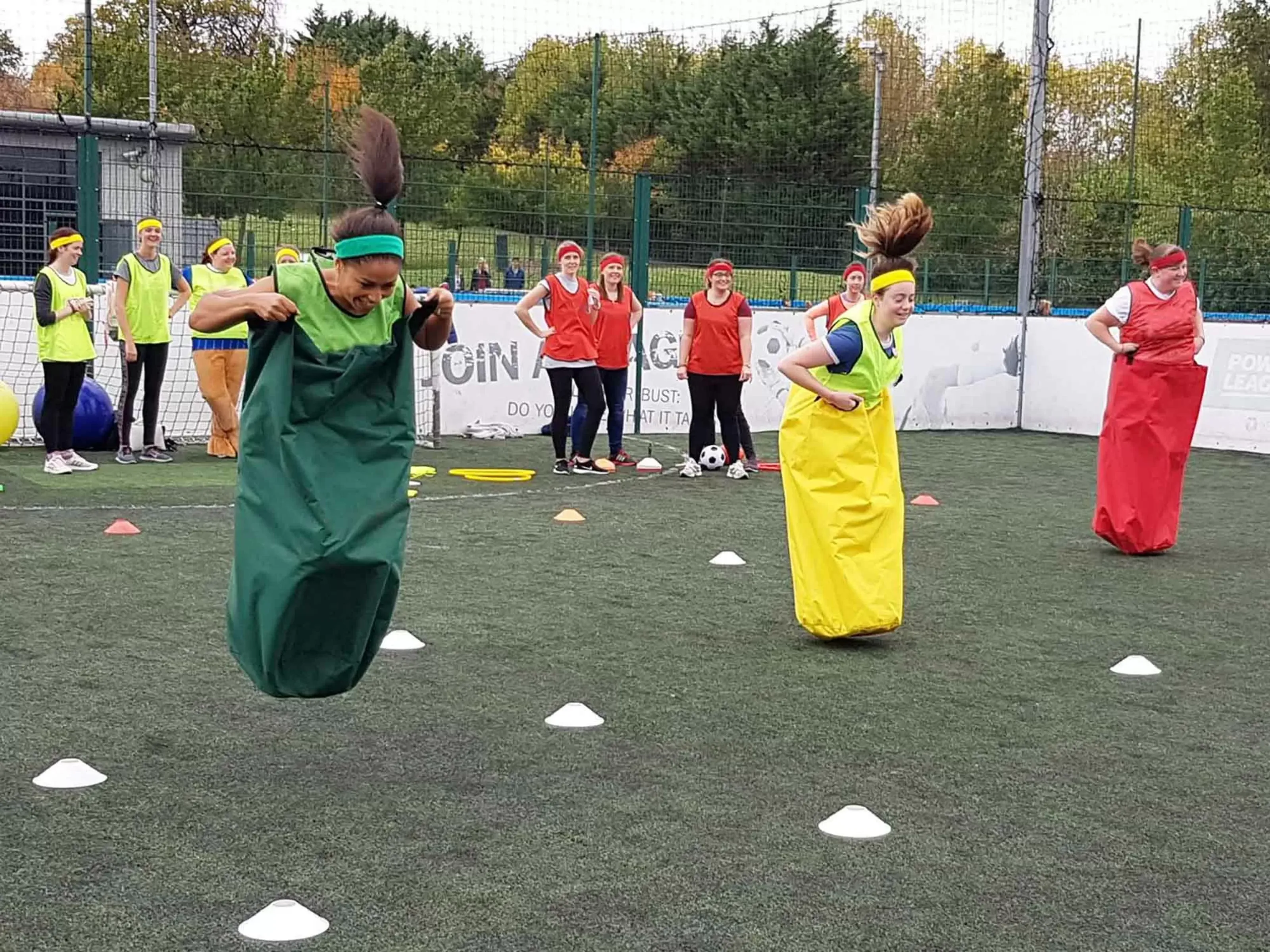 - Split into team houses with coloured bibs