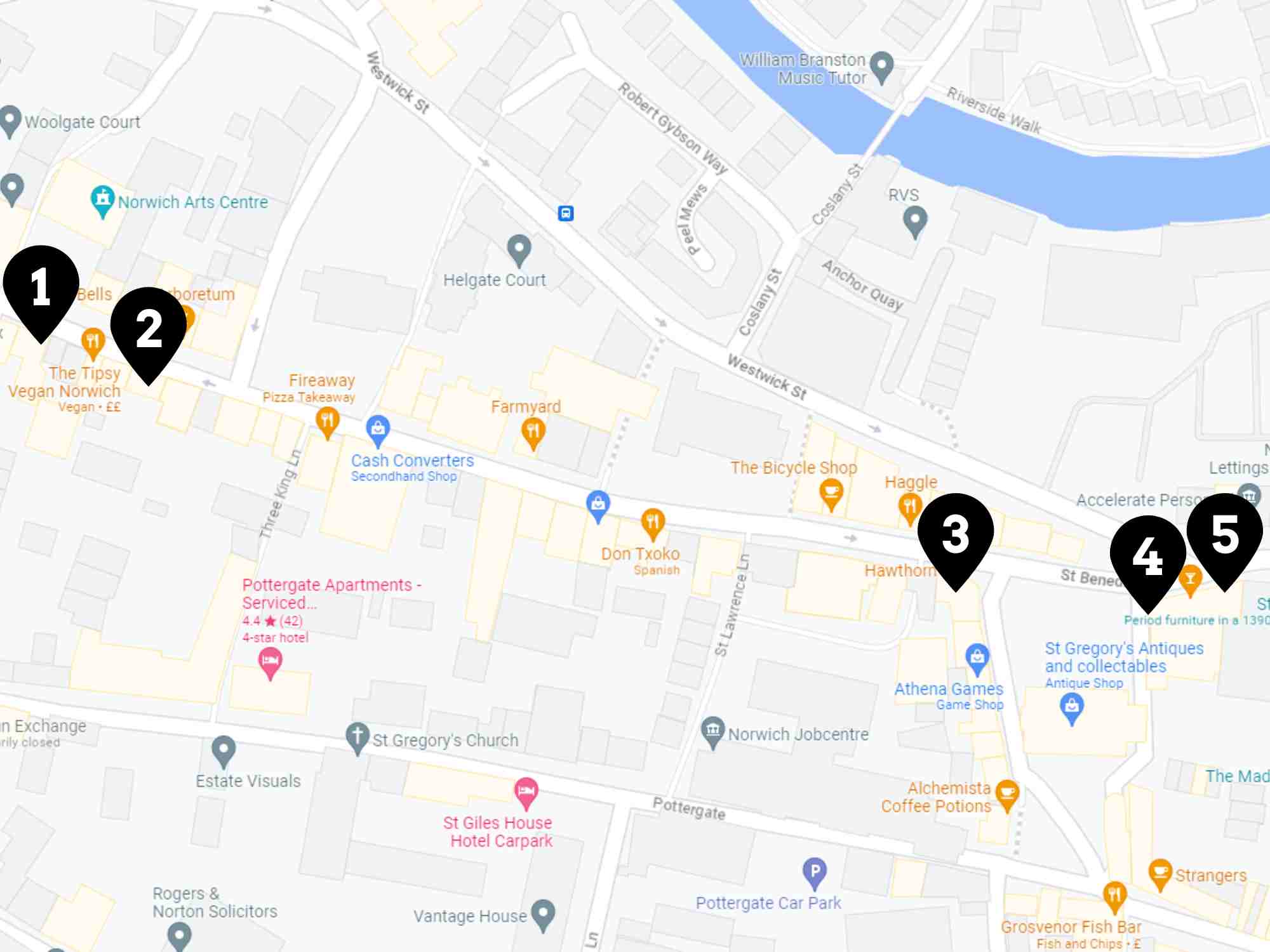 Perfect for quick and simple food and drink, stopping off at one of Norwich's many quaint and cosy cafés is a great idea if you're looking for food on the go.