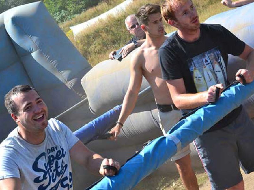 - Giant inflatable human table football pitch