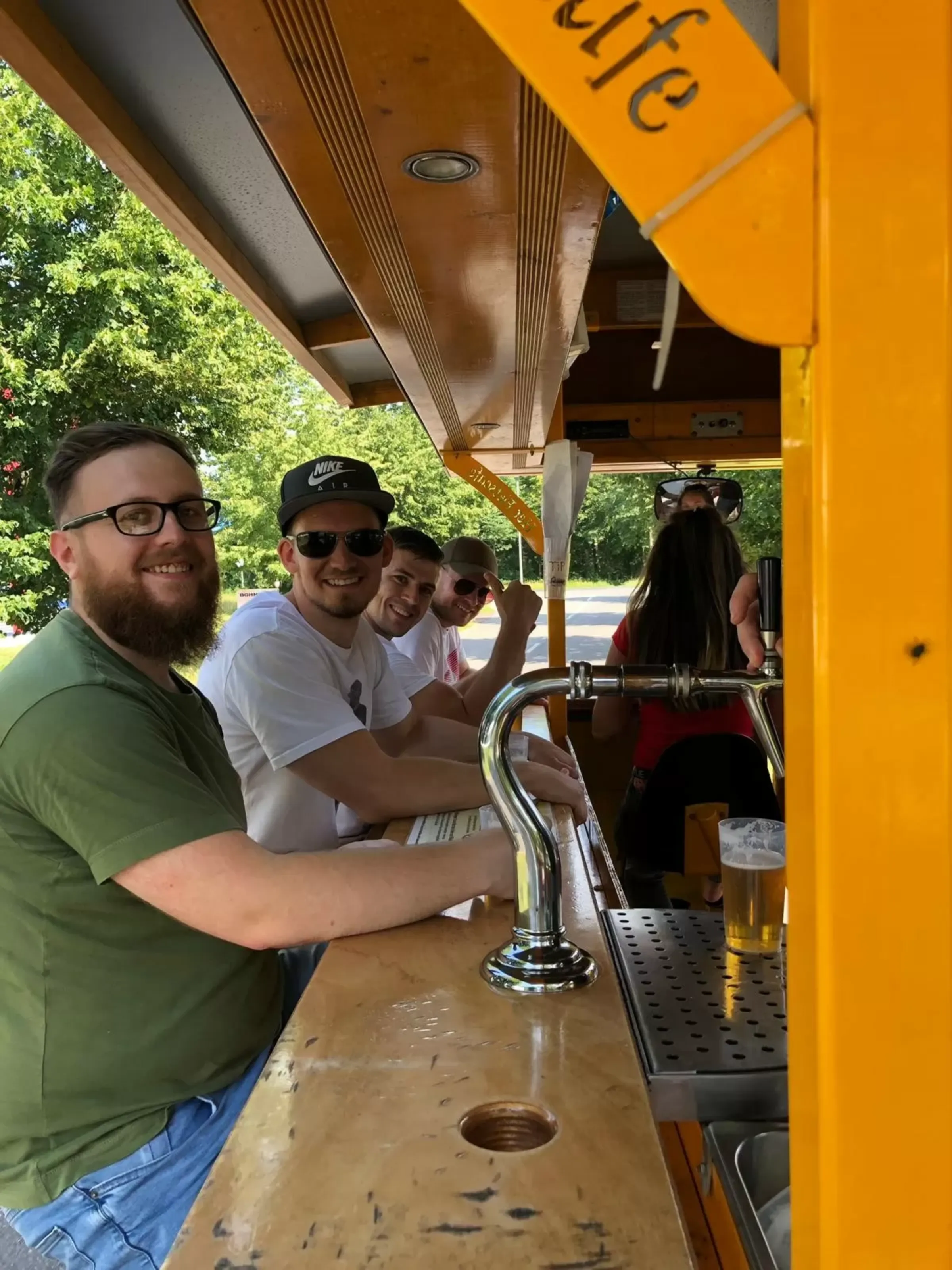 Get ready, lads, because a beer bike, also known as a party bike, is your ticket to stag do hilarity! Picture a massive bike or tricycle with seats around a bar area. You and your mates jump on board, ready to pedal your hearts out and send that bike flying—just like your average bike ride, but with a twist!