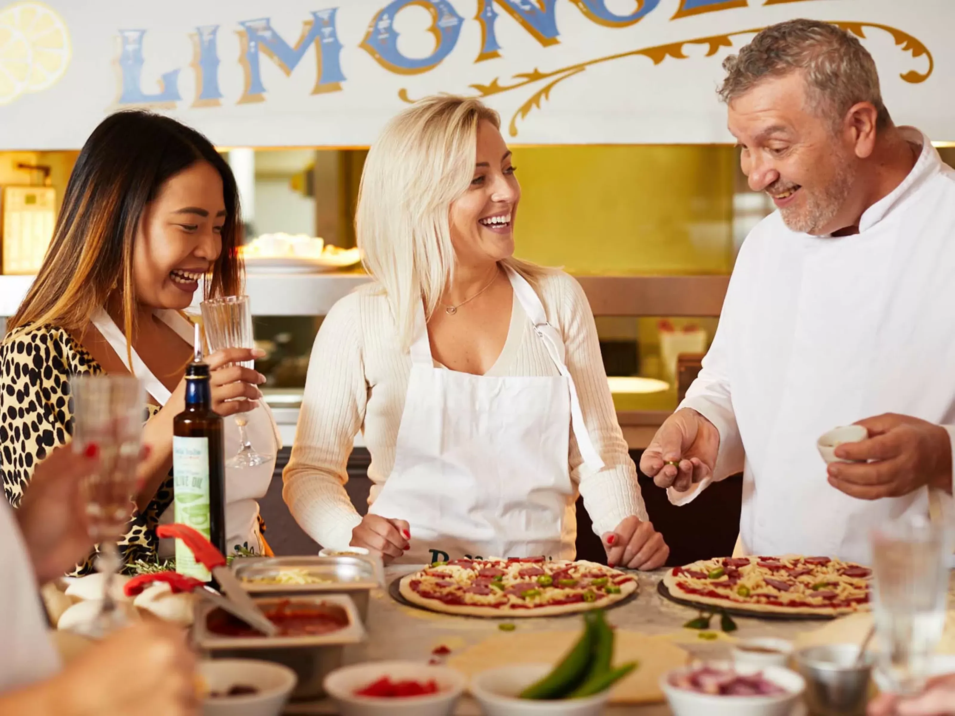 When the event kicks off, you will meet your pizzaiolo chef who will set you up at your pizza making station. Here, you will get to prepare your dough, choose your toppings and take part in some hilarious games throughout the class to bring about some healthy competition. Throughout the class, you’ll also get to enjoy a glass of prosecco each and a few nibbles like garlic bread and dough balls.