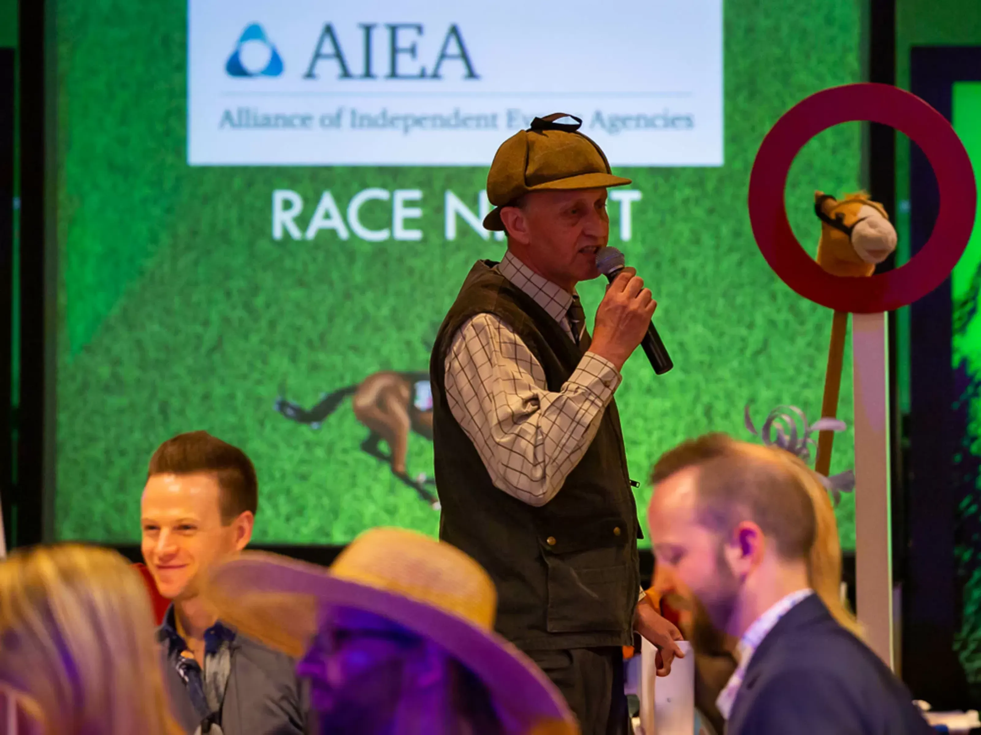 Our race night kicks off with a fun introduction from our lively host, and then it's game on! Racecards are handed out, and teams will pool their fun money to place bets on the horses they think will come out on top.