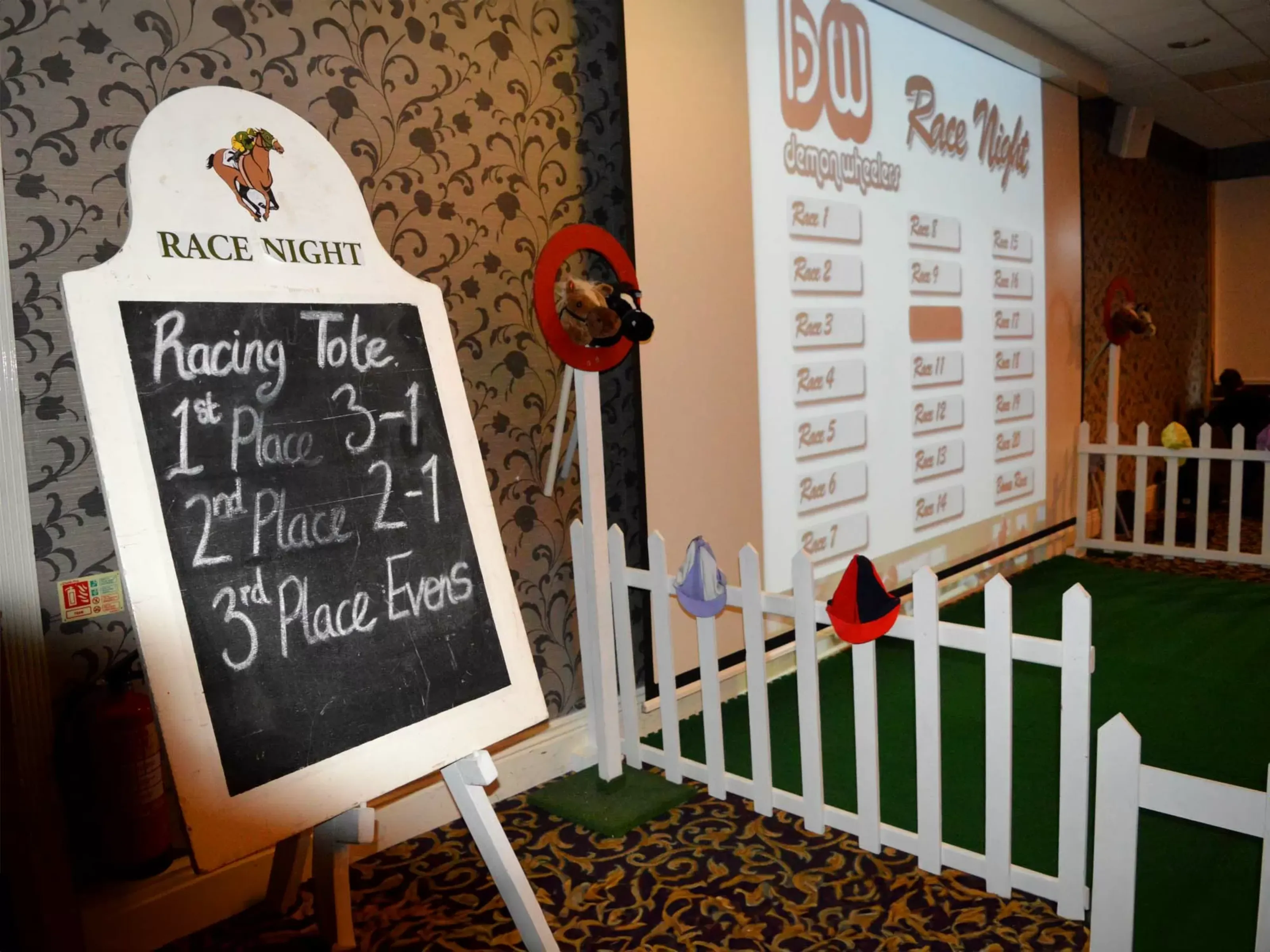 Race nights can be hosted in various venues, including conference and hotel function rooms, community halls, pubs, restaurants, and event spaces. The important thing is to pick a spot that can comfortably accommodate your guests and has the necessary facilities, like seating and a bar. Additionally, the venue should be equipped to set up screens for displaying the races and have ample space for betting areas to ensure a smooth and enjoyable experience.