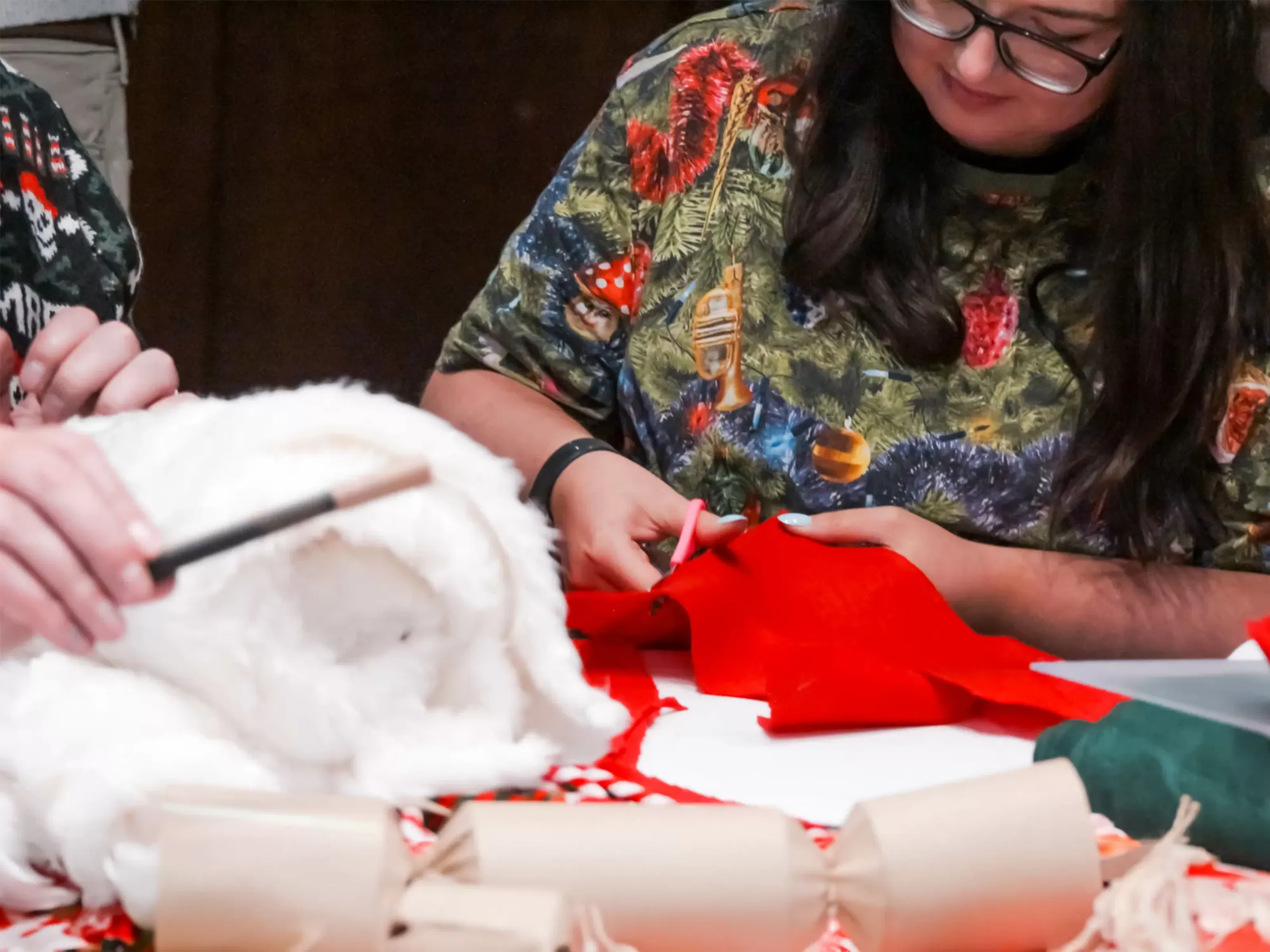 Our artistic host will brief your team on what this Christmas team building event will involve. Then, everyone will have the chance to personalise a Christmas stocking. Perfect for all abilities, the host will give guidance and support throughout. Plenty of materials will be available, including fabrics, trims, cosy felt, fluffy fur, glittery ribbons, jingle bells, and more. All the necessary equipment will be on hand.