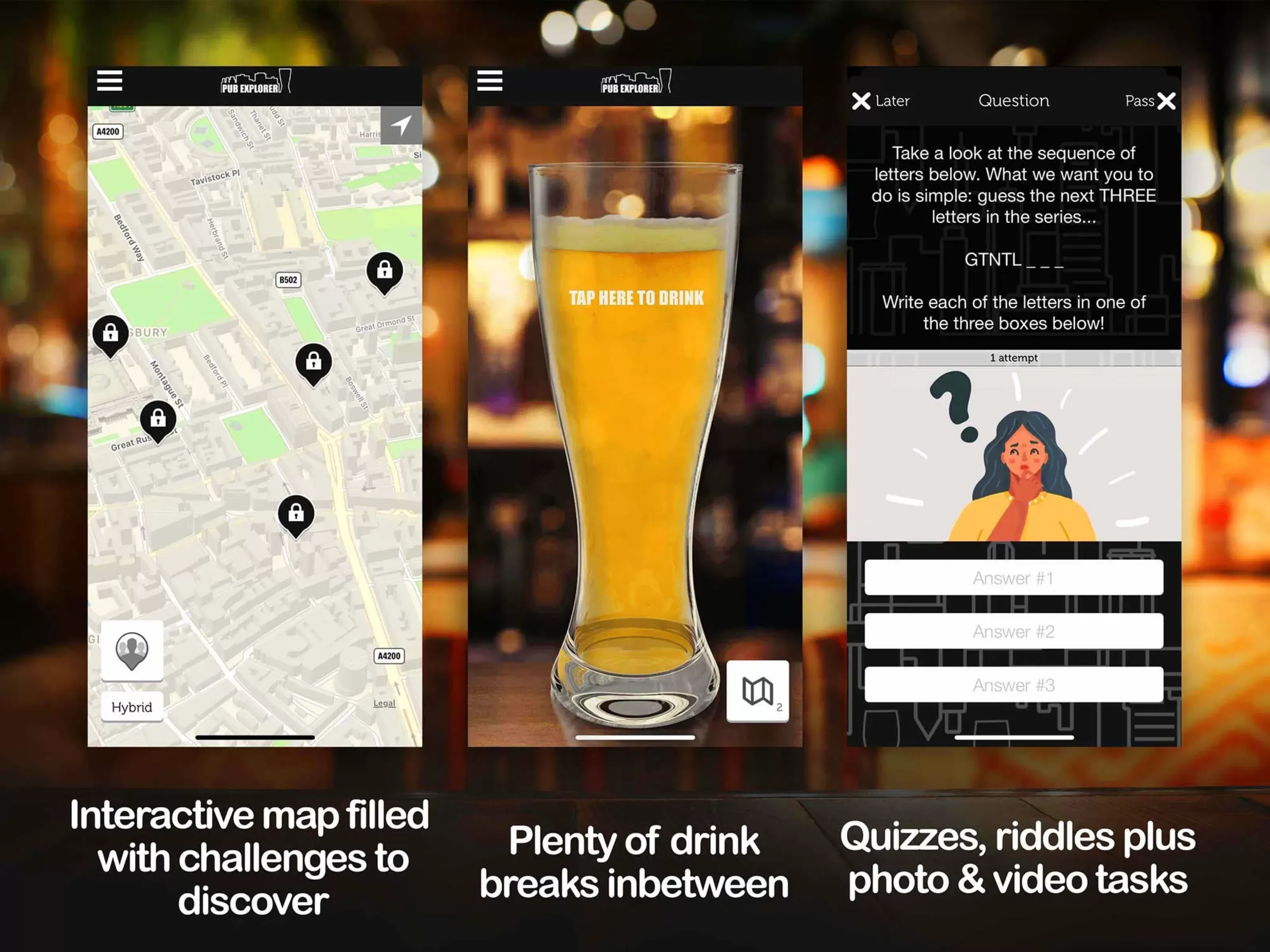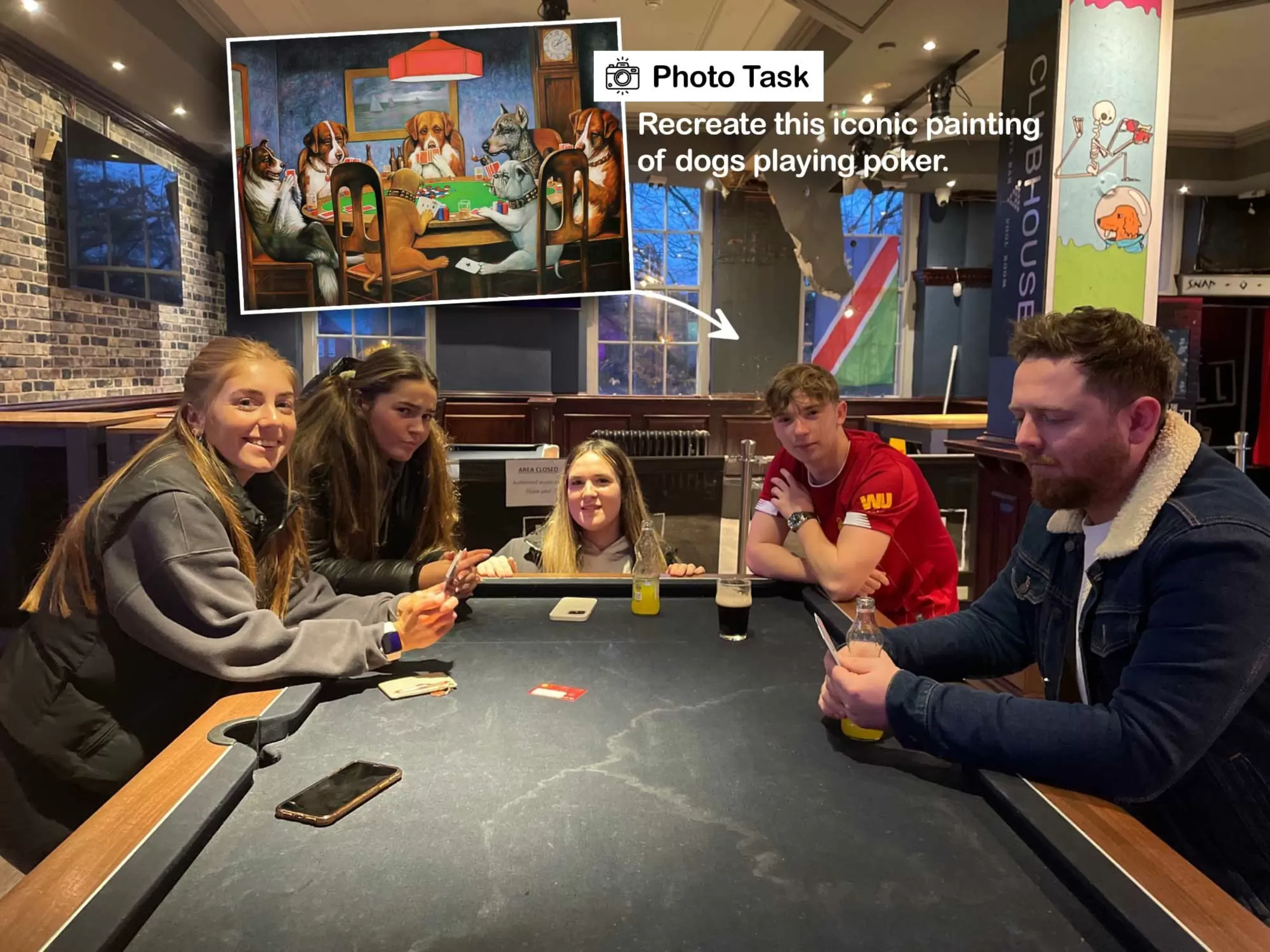 - You choose the pub/bar within the area to visit to complete the challenges