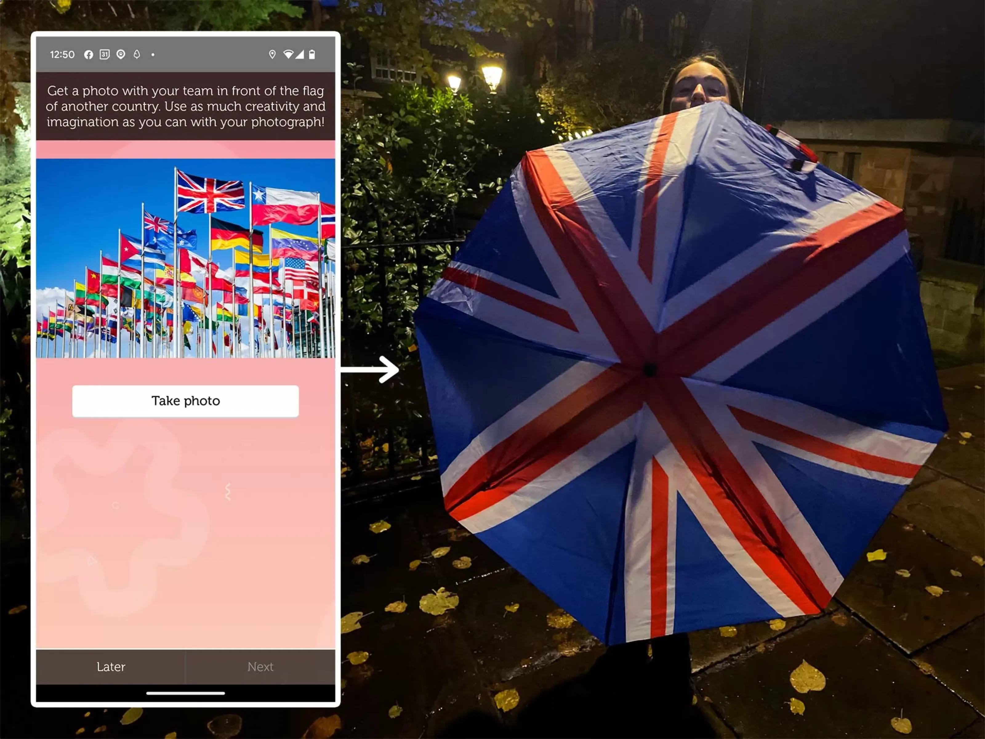 Add a facilitator for an additional cost who will provide a remote briefing via video link plus support throughout the activity. Our event staff will presentation / wrap up the activity showcasing the best photos and videos taken by the participants throughout the event again via remote video link.